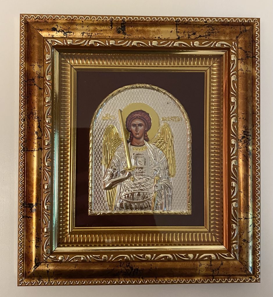 Archange Michael en argent 925 et or 23ct. Dimensions 17,5/19,5 cm.